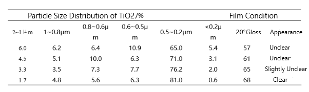Key word: titanium dioxide; particle size; surface treatment; oil absorption; film gloss