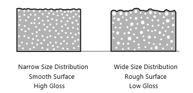 The gloss of film is closely related to the roughness of film surface. When light hits the film surface, some will be absorbed by the film, some will be reflected and scattered, and some will be refracted. The smoother the film surface is, the more light it reflects, the higher the gloss; otherwise, the lower the gloss. Titanium dioxide powder without many coarse particles can be better and more evenly dispersed in the system, and makes it easy to form a smooth and complete film, which has a higher gloss. Please look at Figure 3 (Deng & Wu, 2005, pp. 27-28).