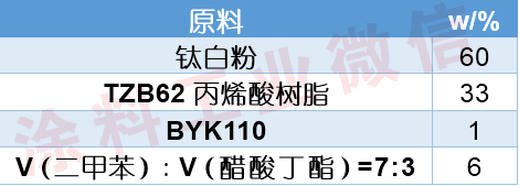 1.1实验材料丙烯酸树脂:TZB-62,江苏天竹化工科技有限公司;金红石型钛白粉:选择R1、R2、R3和R902+、R706以及美礼联RCL595产品。R1、R2、R3为锦钛产品,分别采用3种不同有机表面处理剂进行包膜,其中R1用硅烷偶联剂处理,R2用多羟基多元醇处理,R3用普通多元醇处理;国外产品用多元醇类处理。混合溶剂:天津致远化学试剂有限公司;分散剂:BYK公司。