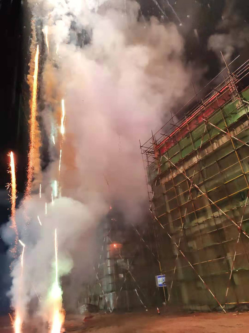 现场鞭炮烟花齐鸣 一片喜庆洋洋