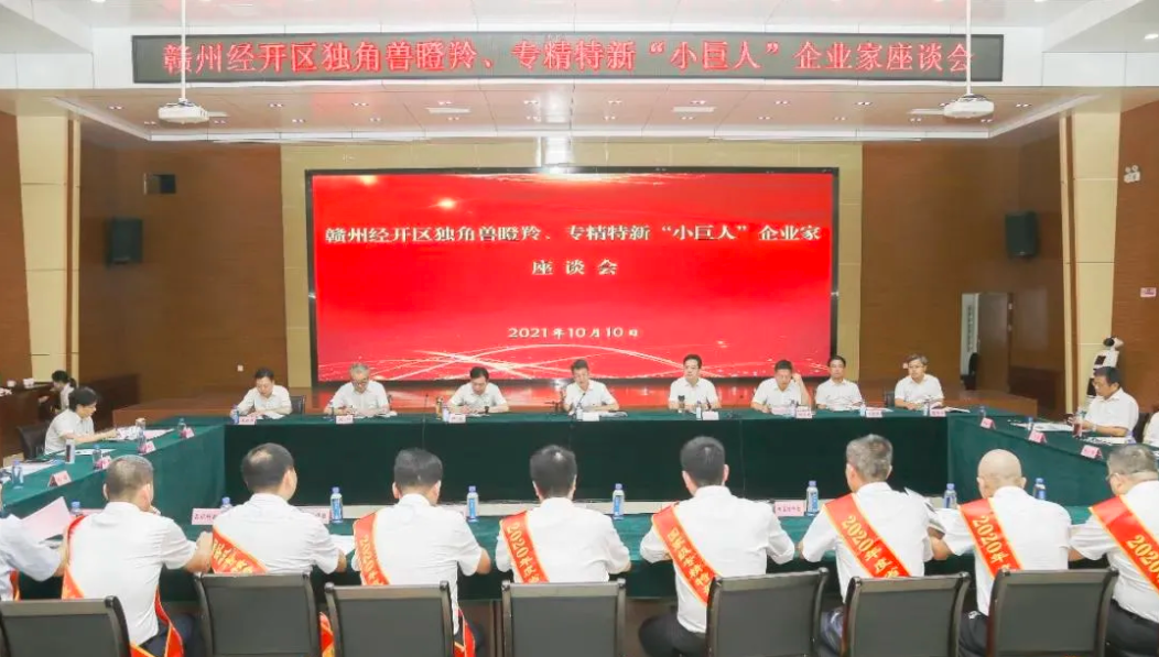 10月10日下午,赣州经开区党工委书记陈水连主持召开区独角兽瞪羚、专精特新“小巨人”企业家座谈会,听取大家对企业发展和科技创新工作的意见建议,共同把科技创新工作做好,推动全区经济高质量发展。全体区领导,相关部门负责人,以及独角兽(潜在、种子)瞪羚(潜在)、专精特新“小巨人”企业家代表参加。