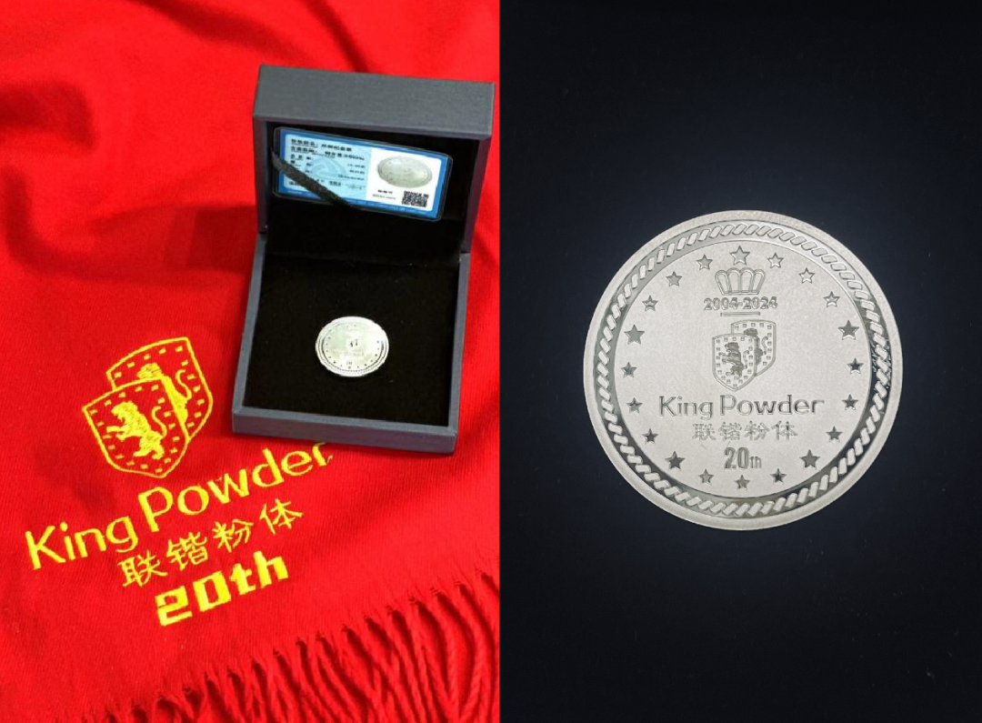 每一位联锴人手中都紧握着一枚精心设计的20周年纪念章,这枚纪念章不仅承载着公司文化的传承,更是团队凝聚力建设的重要象征。纪念章的外圈,代表联锴人团结一心、共同努力的团队精神;内圈的二十颗五角星,则代表着联锴粉体已经走过二十年的辉煌历程;在徽章的正中间,是我们最耀眼的星,联锴粉体的品牌logo,2024年她戴上了王冠,迎来20岁的生日。