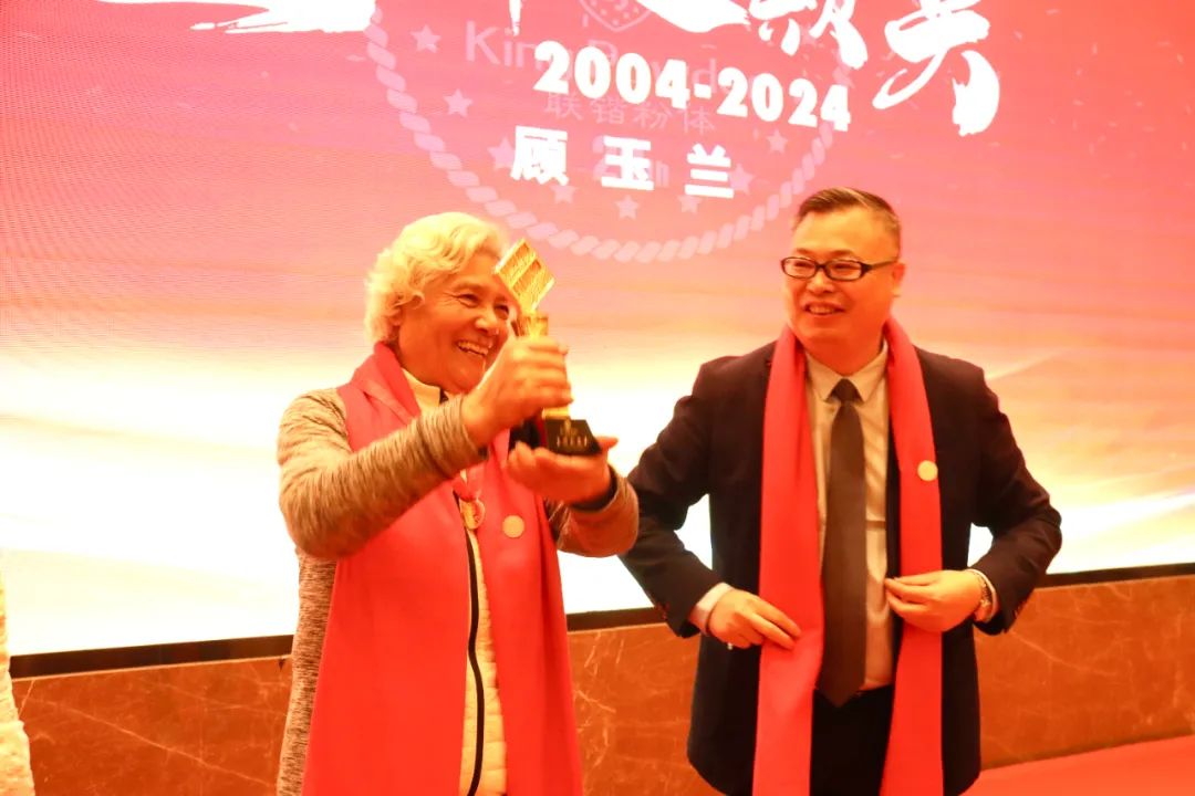 董事长为其亲手写了一封感谢信,并递上了奖牌和奖杯,感谢她在公司的发展中做出了巨大的贡献。