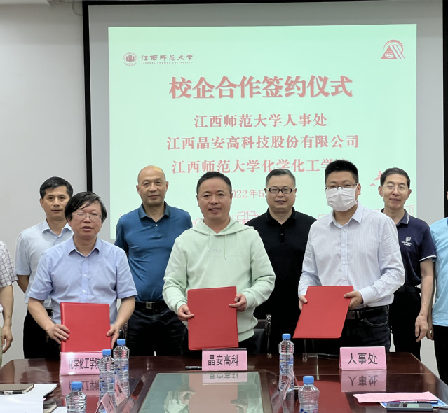 为进一步推进“化学”省一流学科建设,5月31日上午,化学化工学院在方荫楼5510会议室与江西晶安高科技股份有限公司签署联合招收培养博士后研究人员协议,并组织召开了院企合作交流座谈会。校党委副书记、化学学科负责人陈义旺教授出席并讲话,校人事处处长、博士后工作管理办公室主任陈军,江西晶安高科技股份有限公司研究院院长、总工程师吴新根,江西联锴科技有限公司董事长宁海金,化工学院执行院长钟声亮教授以及校博士后工作管理办公室、晶安高科公司相关部门负责同志和化工学院领导班子、教师代表等参加。会议由学院党委书记王一喜主持。