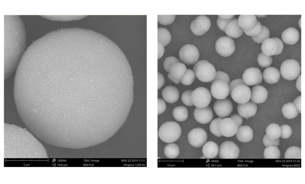 4、Silspher P28多孔球形硅微粉具有优越的机械强度,高压层析试验后,从色谱柱里取出Silspher P28多孔球形硅微粉,显微镜观察发现,高压溶剂下,硅球形状保持完好,强度高没有一丝破裂,再经过循环20次的实验测试,硅微球都形状都没有任何变化,不会因为硅球破裂粒径变细,溶剂通透性变差,堵料、造成柱压力升高而无法分离的状况,耐酸碱性能好,PH值使用范围宽。