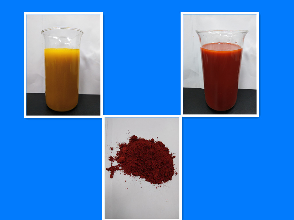 甄选优质的氧化铁色粉,独特的亲水表面改性处理制得Feiront AQ31Y亲水铁黄粉和 Feiront AQ11R亲水铁红粉,增强色粉在水中的润湿分散性能,撒于水面像牛奶状分散均匀,增强色粉在体系中的分散悬浮稳定性,提升氧化铁颜料的色泽、着色力、遮盖力,搅拌分散即可,大幅度降低生产工艺成本和扬尘污染,提升产品品质。适用于水性体系的:油墨、涂料、印染涂布、纸张 、皮革、陶瓷等行业。